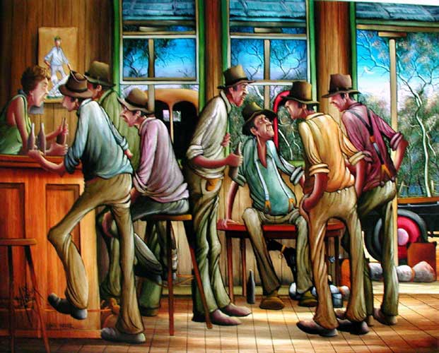 We all changed into our trackie dacks and thongs and went across the road to the boozer to hit the turps and have some cut lunch. The place was really going off! Good on ya for a good day and I intend to have a few stubbies and get full as a goog now.